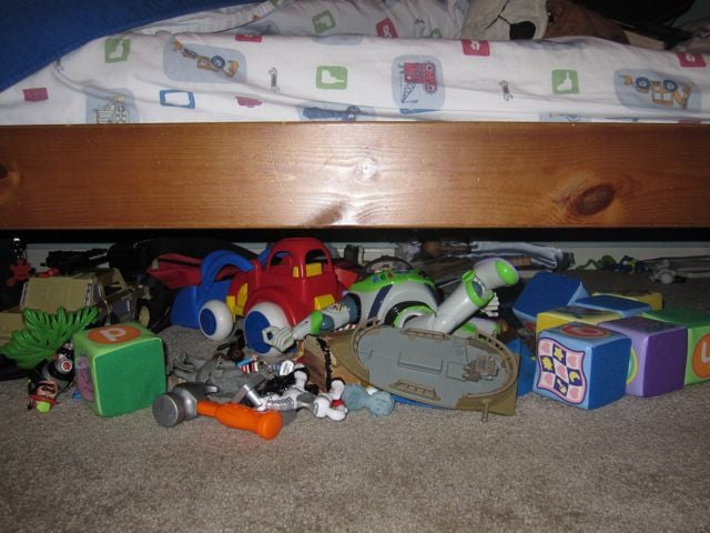 ٤. تخزين الكراكيب واللعب تحت السرير: