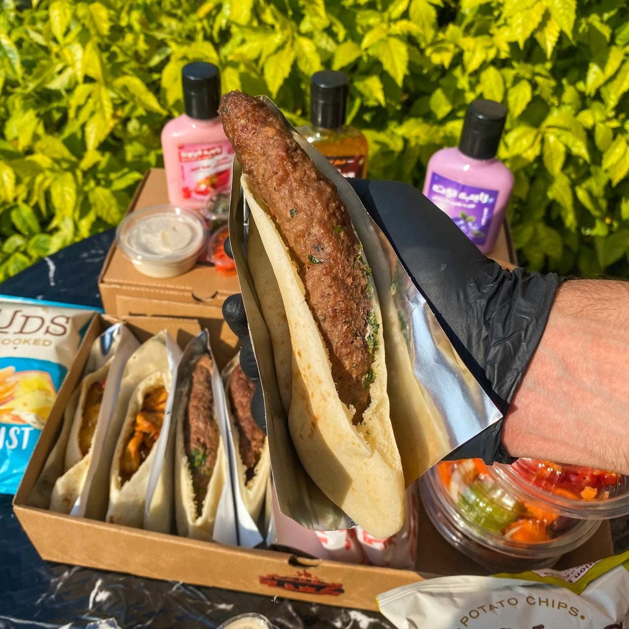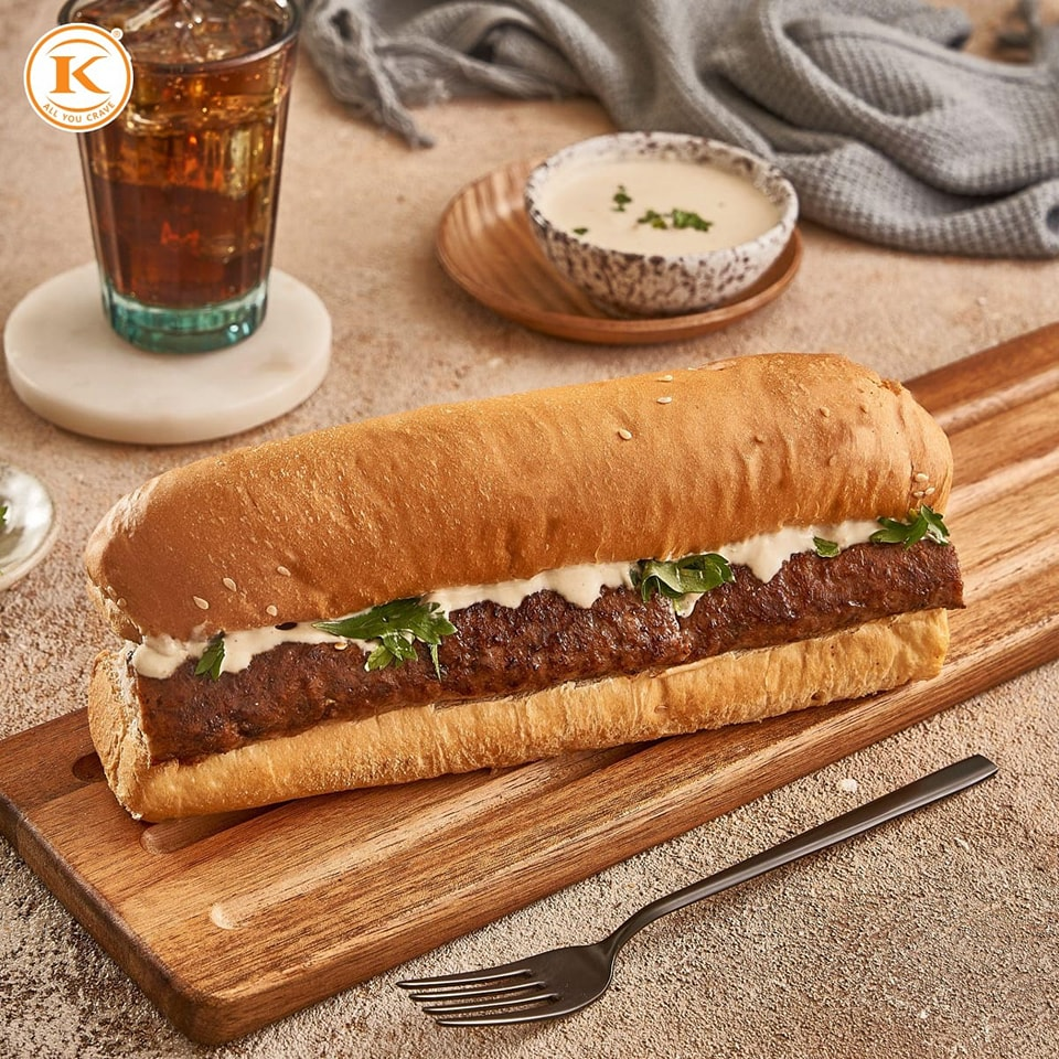 كفتة لذيذة تُقدّم في خبز طازج مُخبوز حديثًا – لا تفوتها.