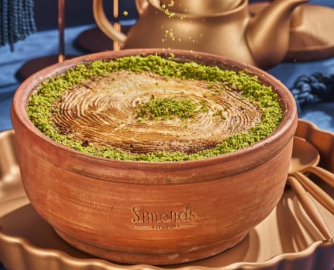 قد يكون سيموندس في القاهرة معروفًا بكعكات وتيراميسو وأرز باللبن وبراونيز وغيرها من المخبوزات ولكن أم علي لديهم لها مكانة خاصة. قوام كريمي، نكهة هادئة، وطبقات مقرمشة تضيف لمسة بسيطة من القرمشة.