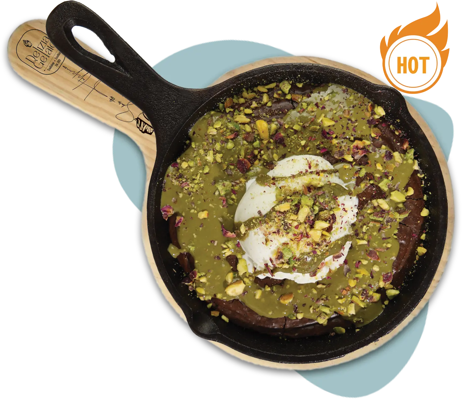 Dig into a large skillet of fudgy brownies topped with your choice of sauce and a scoop of velvety creamy gelato—The perfect treat to combat the winter chill and satisfy your sweet tooth. It’s an absolute must-taste from Delizia’s menu in Cairo for all chocolate lovers.