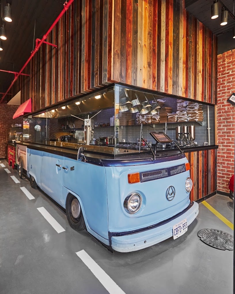 As soon as you step inside, you’ll feel like you’re strolling the lively streets of the US. The bar, shaped like a funky blue bus, sets the tone for the ultimate street food experience. And if that’s not enough, there’s a striking red motorcycle adding a splash of color that’s practically begging to be in your next Instagram post. And don’t even get us started on the ice cream cart! This place is like the perfect set for a legit movie scene!